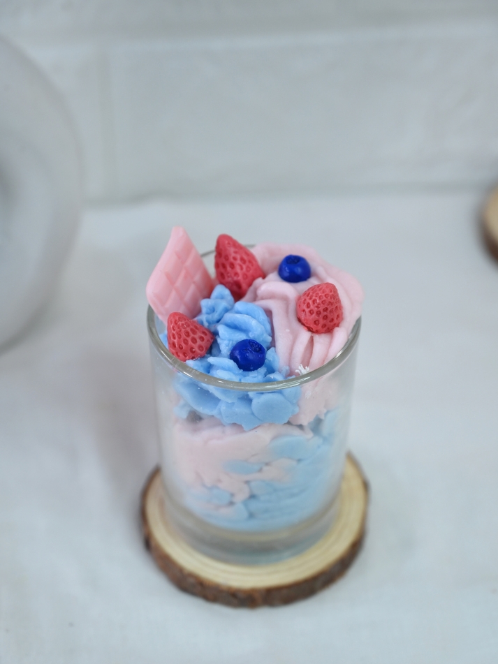 Indulge your senses with our enchanting Cotton Candy Candle, delicately poured in an elegant glass jar. This unique candle is a dreamy swirl of pink and sky blue, reminiscent of sweet fairgrounds and carefree childhood days. Infused with the irresistible scent of fresh, juicy strawberries, it fills your space with a playful, mouthwatering aroma that soothes and uplifts. The soft, pastel blend of colours creates a charming visual treat even before it’s lit, making it a perfect décor piece for any room. Light it up to enjoy a cozy, nostalgic ambiance or gift it to someone special who loves a touch of whimsy and sweetness in their day.